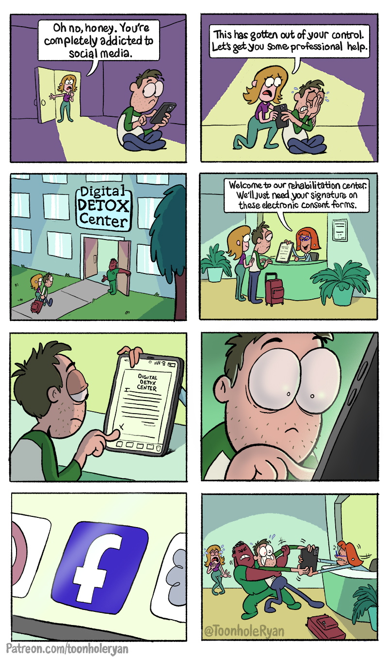 Categories All Comics Gag Comics Social Media Addiction Post date March 20, 2026 Tags Toonhole Ryan 4 Comments on Social Media Addiction Tags Toonhole Ryan 4 Comments on Social Media Addiction